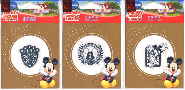 ミッキー&ミニーのメタルシールです♪携帯電話やデジタルカメラなどに☆シートサイズ:約3×3.2cm全3絵柄/色・柄指定不可